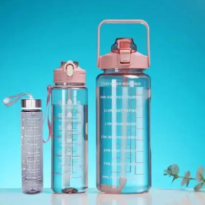 Stay energized and healthy with this stylish 3-bottle hydration set. Designed to suit all your daily needs – from workouts to desk time – this set includes three different sizes: 2000ml, 900ml, and 300ml. The time-marked design encourages regular water intake, while the leakproof, break-resistant ABS plastic ensures long-lasting use. Perfect for travel, gym, school, or home – this compact and aesthetic set in purple will keep you sipping with style.