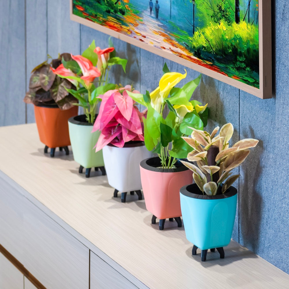 Simplify plant care with this 5‑piece set of self-watering planter pots. Each pot features a built-in water reservoir and capillary wick system, ensuring that your plants receive consistent moisture for optimal growth. Crafted from durable, UV-resistant plastic, these 5.8″ multicolor pots are perfect for indoor tables or outdoor patios. With an elegant oval shape and a contemporary design, they’re both functional and stylish—ideal for home, office, balcony, or garden décor.
