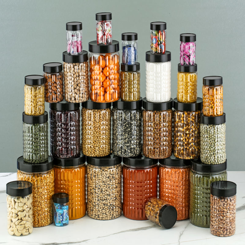 Organize your pantry in sleek style with this black plastic grocery container set. Featuring five airtight containers (250, 350, 650, 1200, and 2000 ml), this versatile collection keeps spices, grains, snacks, and more fresh and accessible. Crafted from BPA-free food-grade plastic and equipped with secure lids, these stackable boxes save space and add a modern touch to your kitchen, fridge, or dining area. Durable, reusable, and easy to clean—perfect for everyday use.