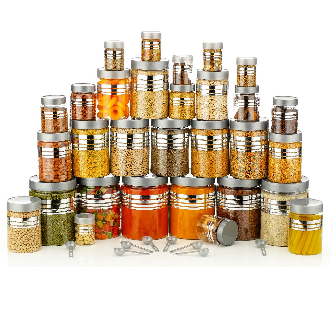 Organize your kitchen like a pro with this Pack of 24 Plastic Grocery Containers, designed to keep your dry foods fresh and your pantry clutter-free. Featuring four versatile sizes — 250 ml, 350 ml, 650 ml, and 1200 ml — this set is perfect for storing everything from spices and pulses to snacks and leftovers.